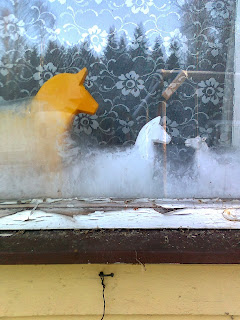 Minäkin kuuluin niihin, jotka uskoivat ettei ilman hevosia voi elää (vaikka Suomessakin on miljoonia ihmisiä, jotka todistavat että kyllä voi ja tyytyväisenä). Edellisten ponien kuoltua ostin heti tämän nyt lopetetun. Kaiken pitää olla vain heppaheppaa ja sillä lailla kai syntyy niitä Wegeliuksen paheksumia "fakki-idiootteja, jotka joutuvat katselemaan kattoon kun puhutaan Afganistanin tilanteesta" - paitsi että omassa tapauksessani hevosiin käytetty aika ei ole johtanut kovin merkittävään taitoon tai edes hevosten hengissä pysymiseen, ainoastaan tietämättömyyteen Afganistanista ja kaaosteoriasta. Minulle on tarjottu ostettavaksi erinäisiä poneja oletettavasti juuri siinä uskossa, etten voi elää ilman sellaista. Mutta. Hevosen - tai poninkin - omistaminen on lopunkaiken täysin yhteensopimatonta Suomen ilmaston kanssa ja johtaa lisäksi erittäin epämiellyttäviin tilanteisiin, kuten ähkypotilaan talutteluun pakkasessa keskellä yötä, suuriin eläinlääkärikuluihin ja ahdistukseen. Tämän heppahullun malja on niin täynnä noita epämiellyttävyyksiä, etten ole valmis kärsimään niitä vain siksi että jokin mystinen poninomistajan identiteetti sitä vaatii. Jos vielä kohtaan Sen Oikean, niin luultavasti olen valmis kärsimään. Mutta minkä tahansa ponin vuoksi en, koska halvemmaksi tulee kuitenkin taluttaa koiraa kuin (sairasta) ponia. Ja koiria minulla jo on. Ne vaikuttavat jostain syystä terveiltä, vaikkei aikuisena ostettuakaan tutkittu millään tavalla. Jos hevosen ostaa ilman kuvia, voi samantien alkaa kutsua kavioliittoaan saattohoidoksi ja viisastelijat vielä tietävät, että oma vika.